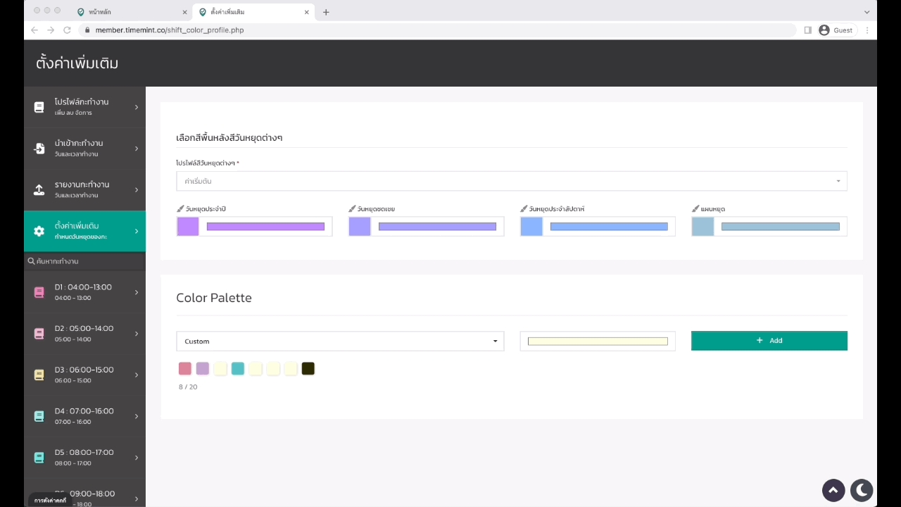 ผู้ใช้งานสามารถใช้ค่าเริ่มต้นที่ระบบกำหนดให้หรือกำหนดเองตามความเหมาะสม วิธีการเพิ่มโปรไฟล์สีวันหยุด