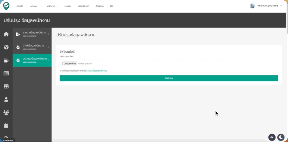 เมื่อแก้ไขข้อมูลพนักงานในไฟล์ Excel เรียบร้อยแล้ว ผู้ใช้งานสามารถนำเข้าไฟล์เพื่ออัปเดตข้อมูลในระบบได้ตามขั้นตอนดังนี้