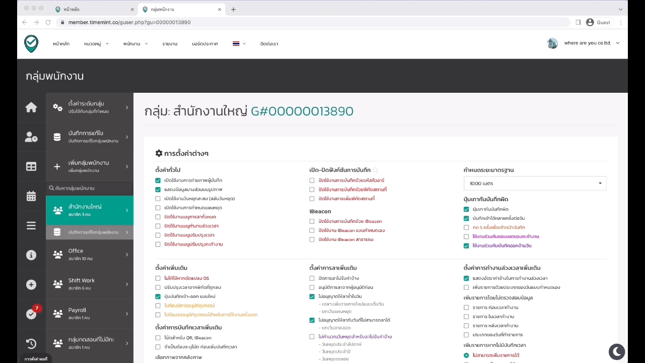 วิธีการเปิด/ปิดฟังก์ชันกล่องตัวเลือก ระดับกลุ่มพนักงาน