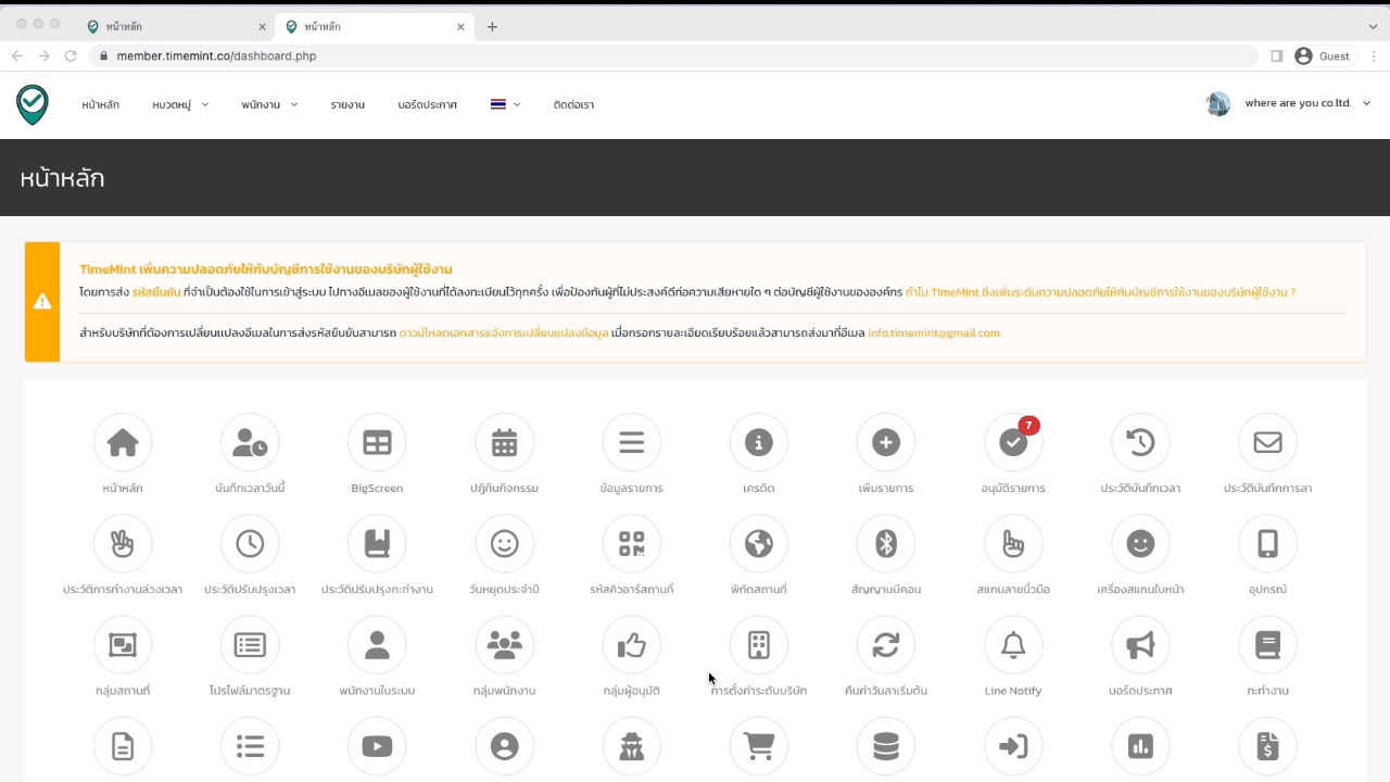 ตัวอย่างการเเสดงบน เเอปพลิเคชัน TimeMint สำหรับพนักงาน