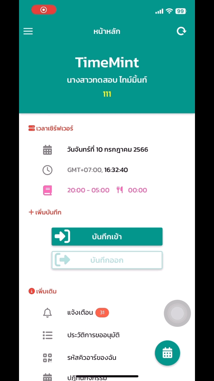 ไปที่เเอปพลิเคชัน TimeMint (สีเขียว) ของพนักงาน