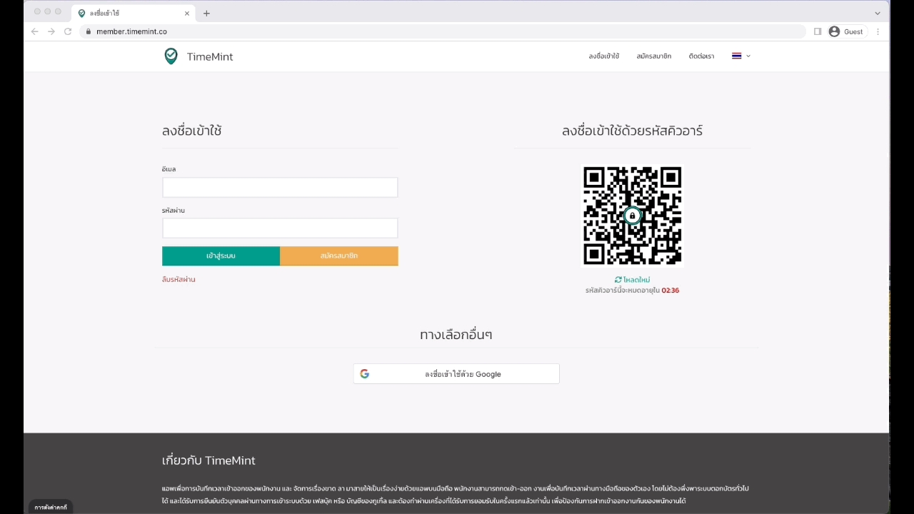จะเข้าสู่หน้า “ลงชื่อเข้าใช้ด้วยรหัสคิวอาร์”
