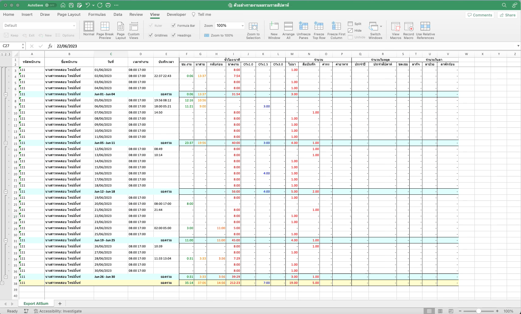 # All Sum แสดงยอดรวมรายสัปดาห์