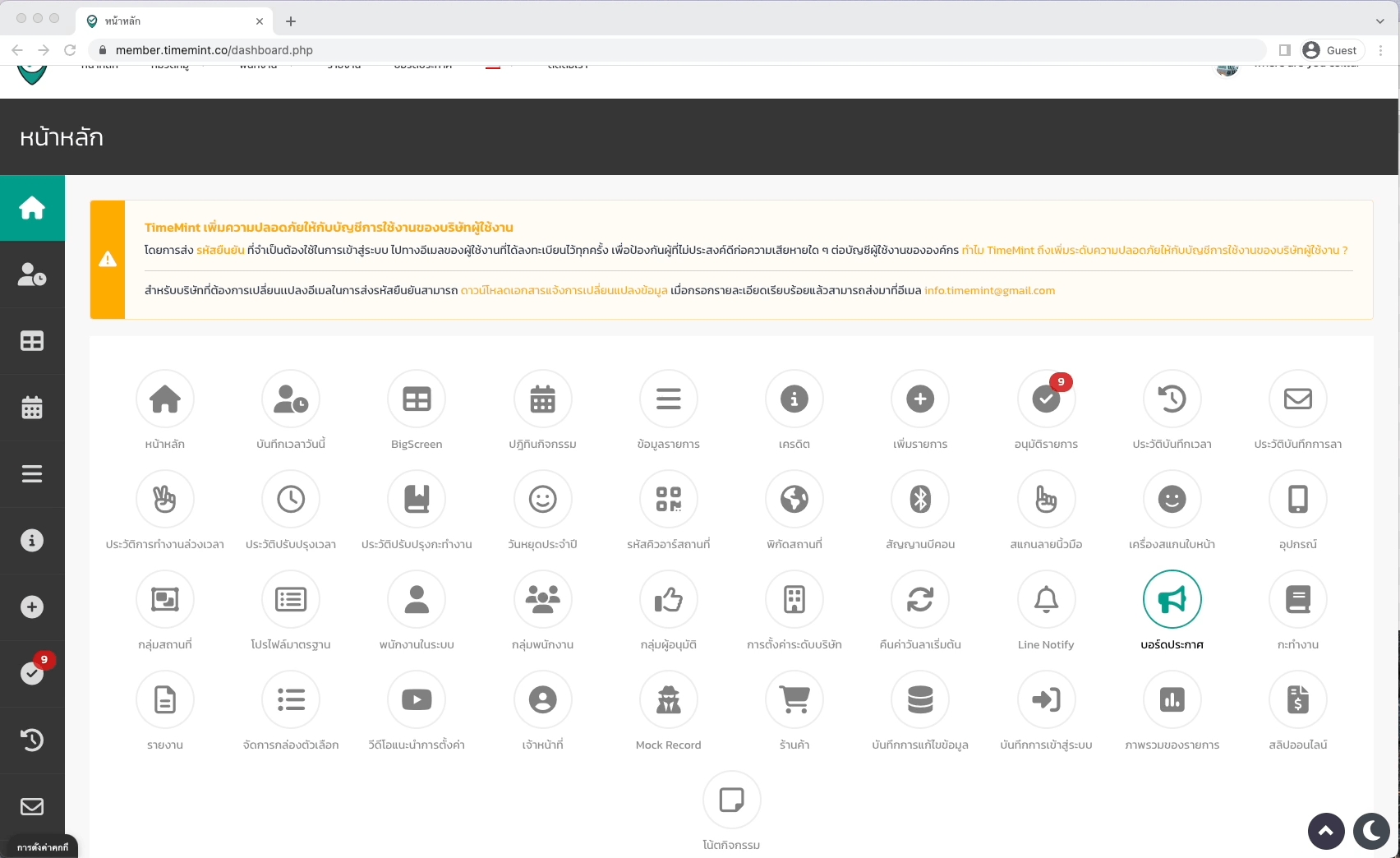 ผู้ใช้งานสามารถประกาศเเจ้งข่าวสารต่างๆของบริษัท ไปยังเเอปพลิเคชั่น TimeMint ที่พนักงานใช้งานอยู่ได้ ผ่านฟังก์ชันประกาศเเจ้งเตือน