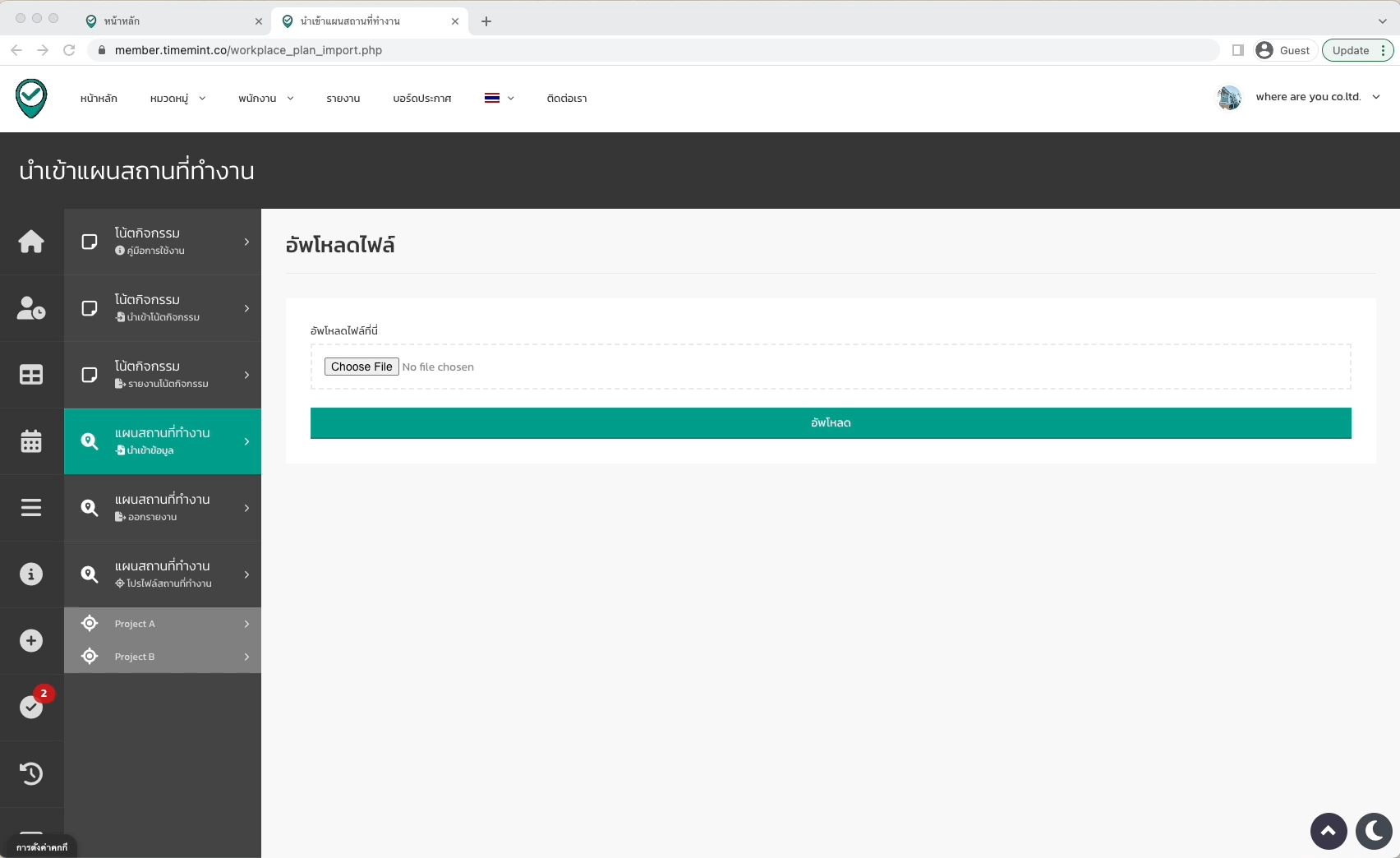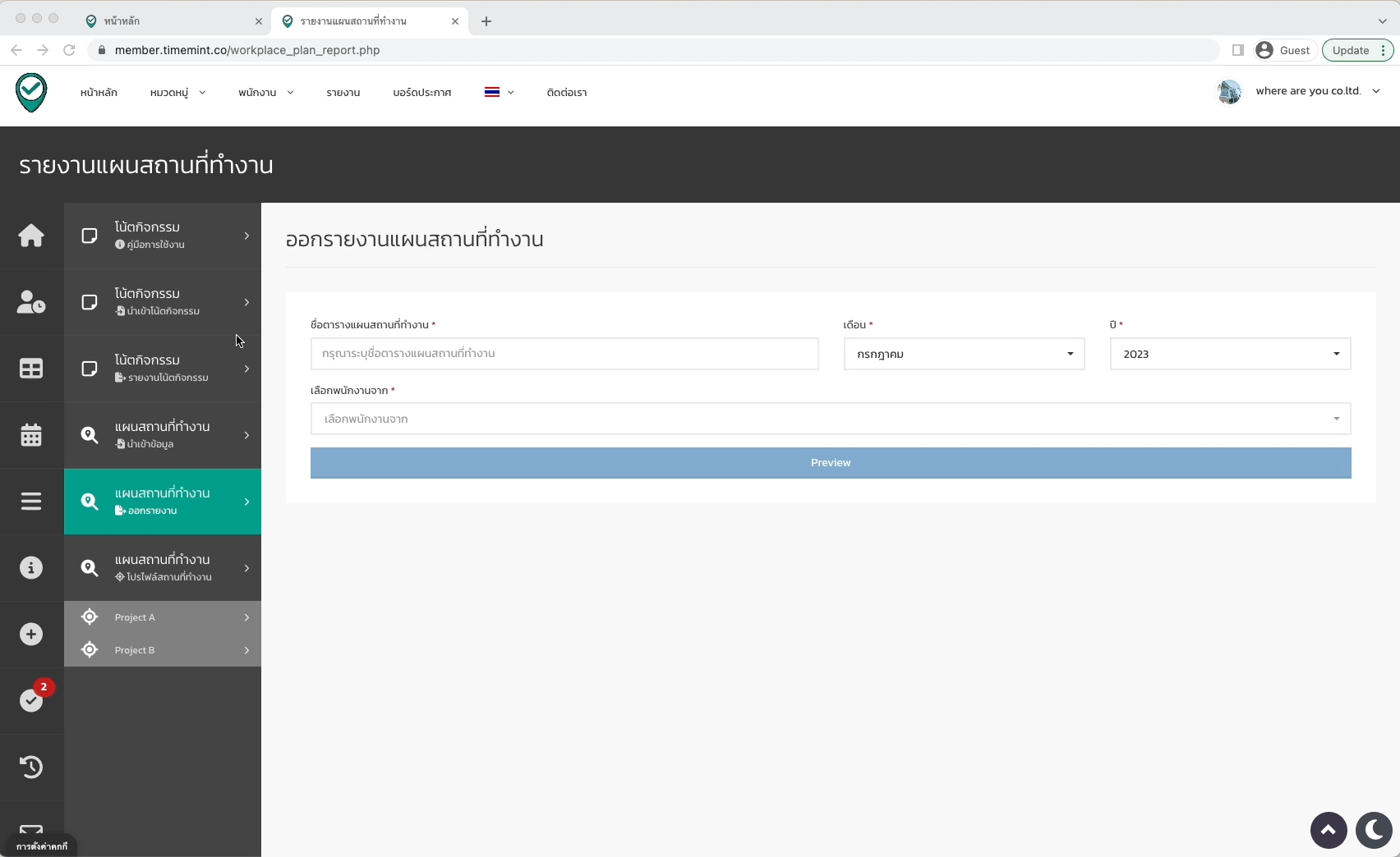 - เลือกไปที่ "เเผนสถานที่ทำงาน"