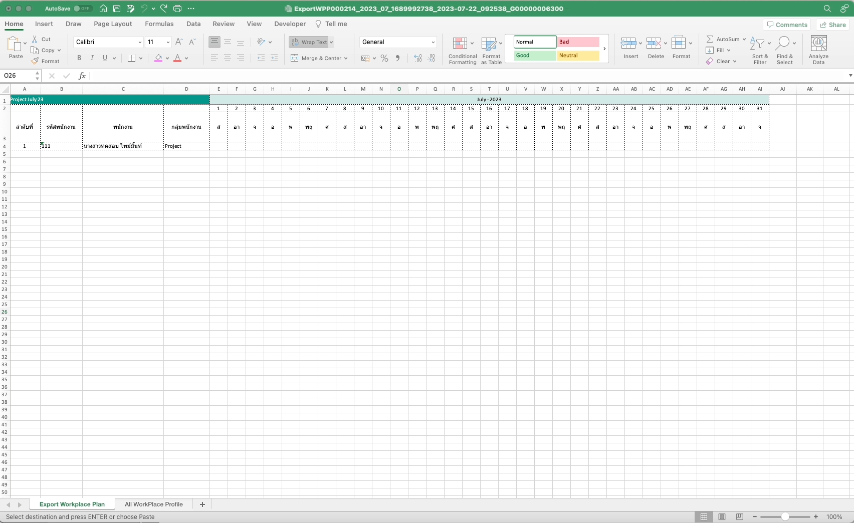 - เเพลนโปรไฟล์สถานที่บน excel เพื่อนำเข้าเเผนสถานที่ทำงาน