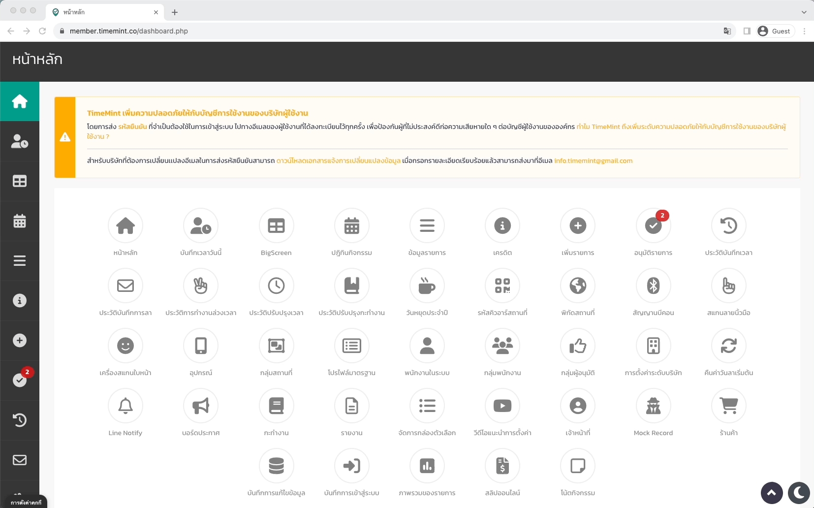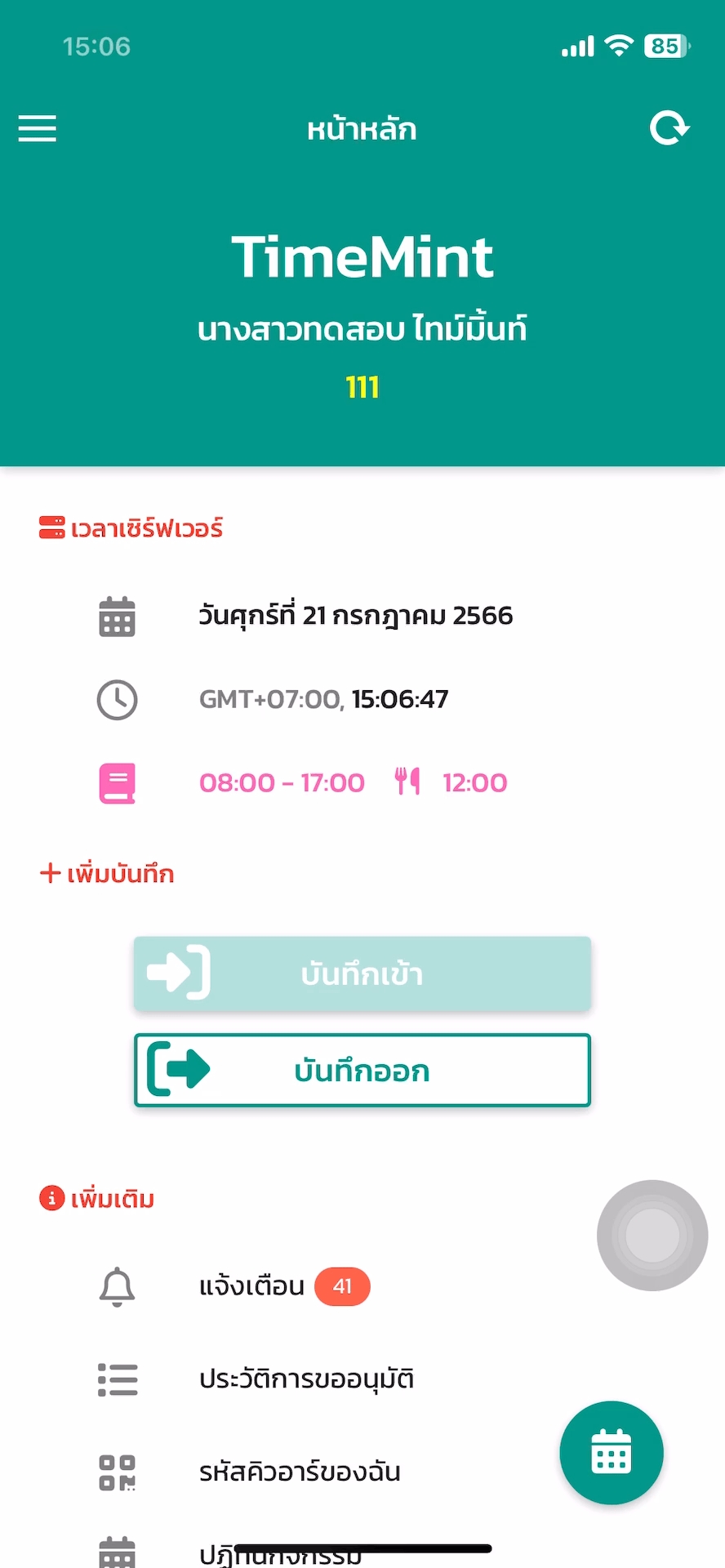 แสดงเเผนสถานที่ปฏิบัติงานในหน้าปฏิทินกิจกรรมบนเเอป TimeMint (สำหรับพนักงาน)